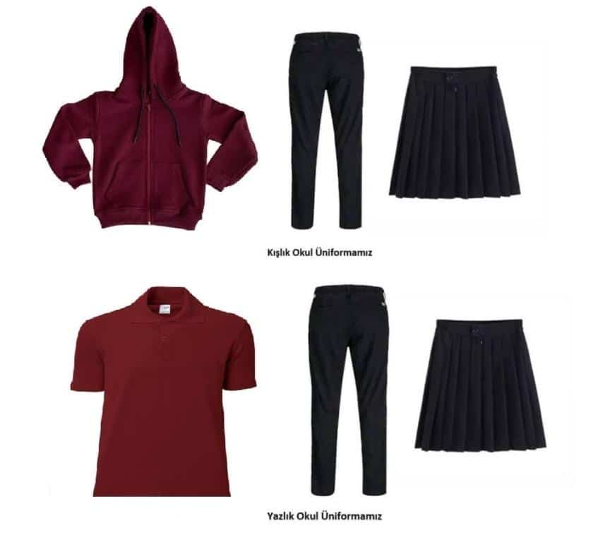 Bu kapsamda okulumuzda ikinci dönemden itibaren üst giysi olarak bordo renk tercih edilmiş olup, alt giyim olarak da siyah pantolon seçilmiştir. herhangi marka çizgi vs olmayacak keten, kot ya da eşofman olmayacaktır kendilerinin belirlediği değil okulumuzun yıllardır belirlediği KIŞLIK,BAHARLIKve YAZLIK kıyafeti giyecekler. Üst kıyafet olarak (yazlık ,kışlık ve baharlık ) BORDO renk okul isminin BİAL (Borsa İstanbul Anadolu Lisesi )olduğu nakış işlenmiş olacak. Herhangi bir materyal ile tutuşturulmuş olmayacak polo yaka giyim tercihi yapılacak, ancak renk bordo olacaktır.